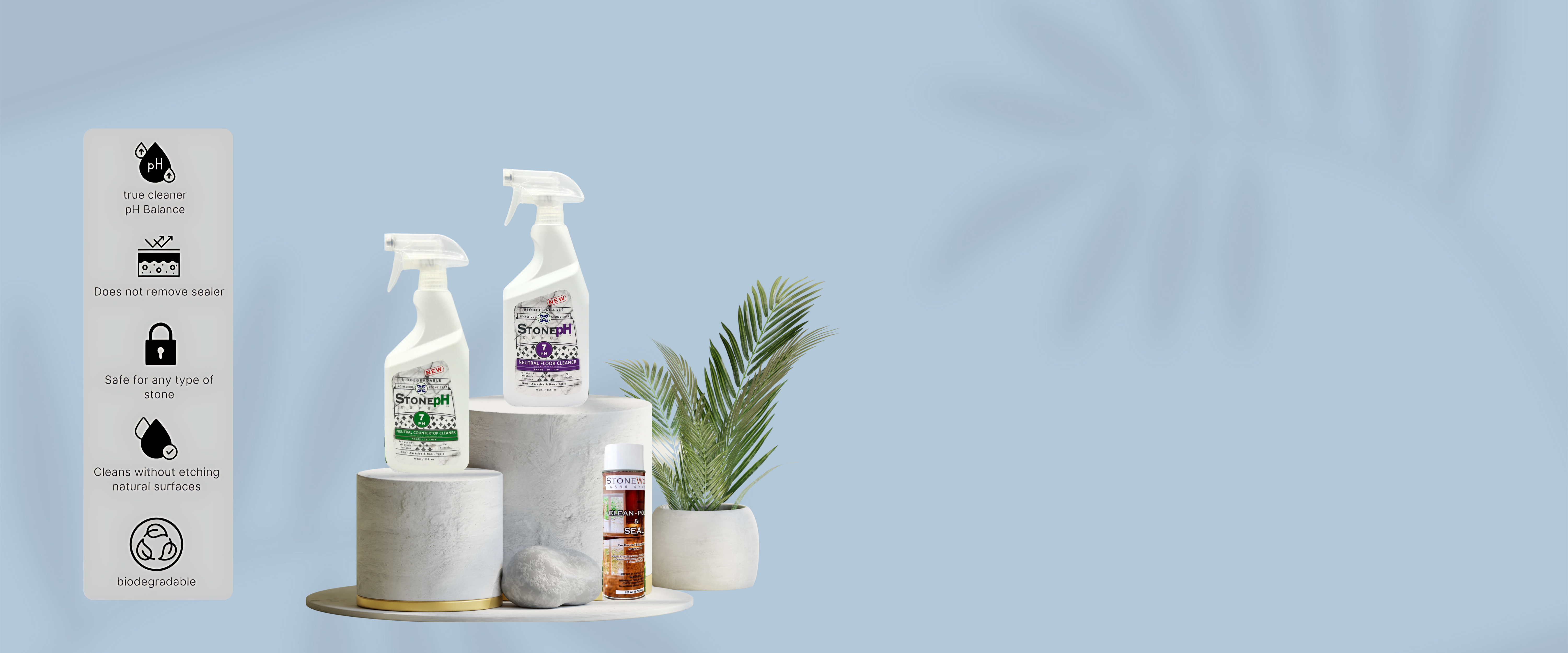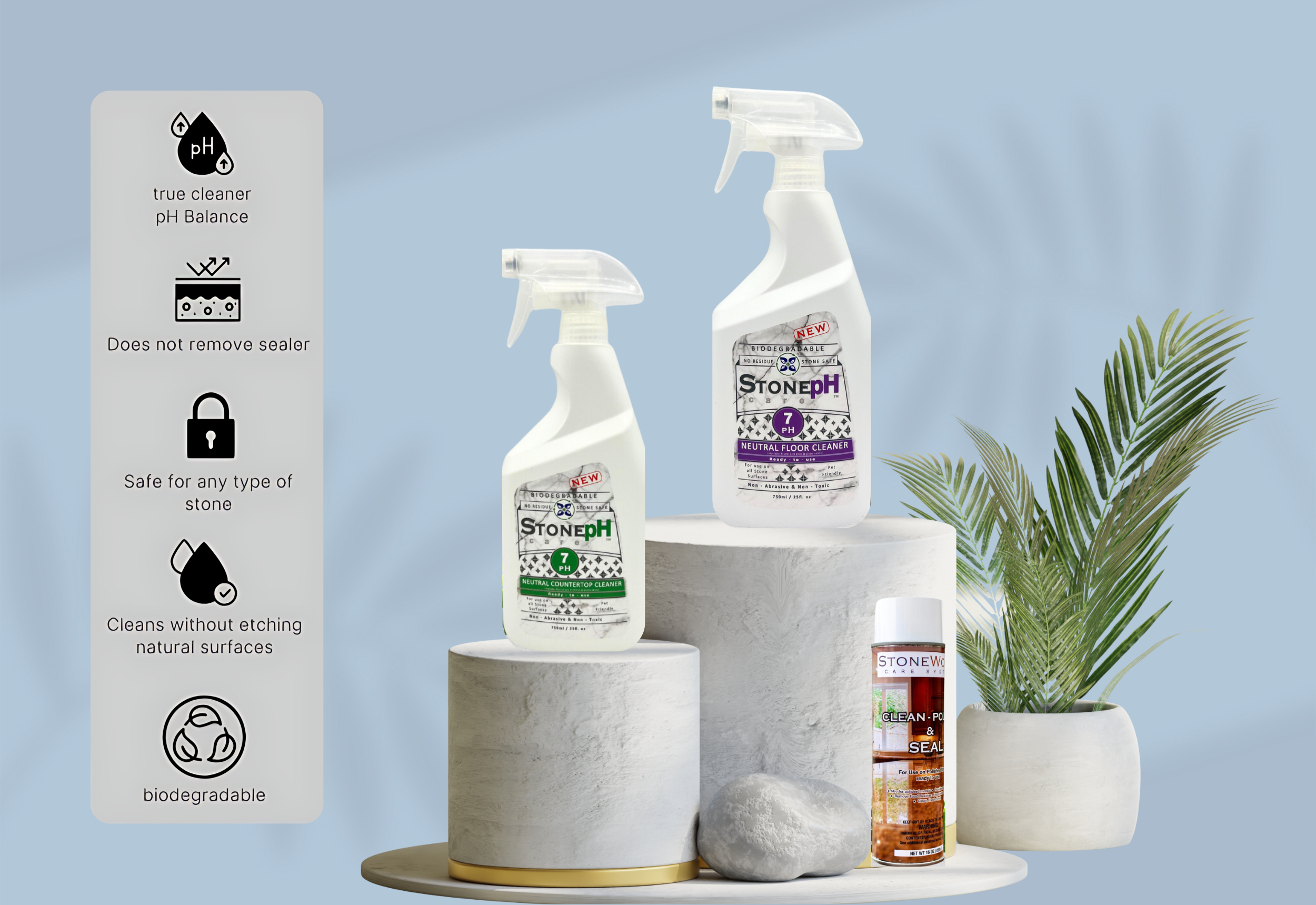 StonepH is not your typical brand. It is the vision of a stone restoration expert determined to change how we care for our stone surfaces. Recognizing that many clients struggled with harsh chemicals that damaged more than clean, our founder set out to craft a user-friendly, biodegradable solution that not only cleans effectively but also preservers the stone's integrity. The result of this dedication is StonepH a testament to simple, safe and sustainable stone care. Our goal is clear, to empower homeowners to maintain and enjoy the natural elegance of their stone surfaces with complete peace of mind.